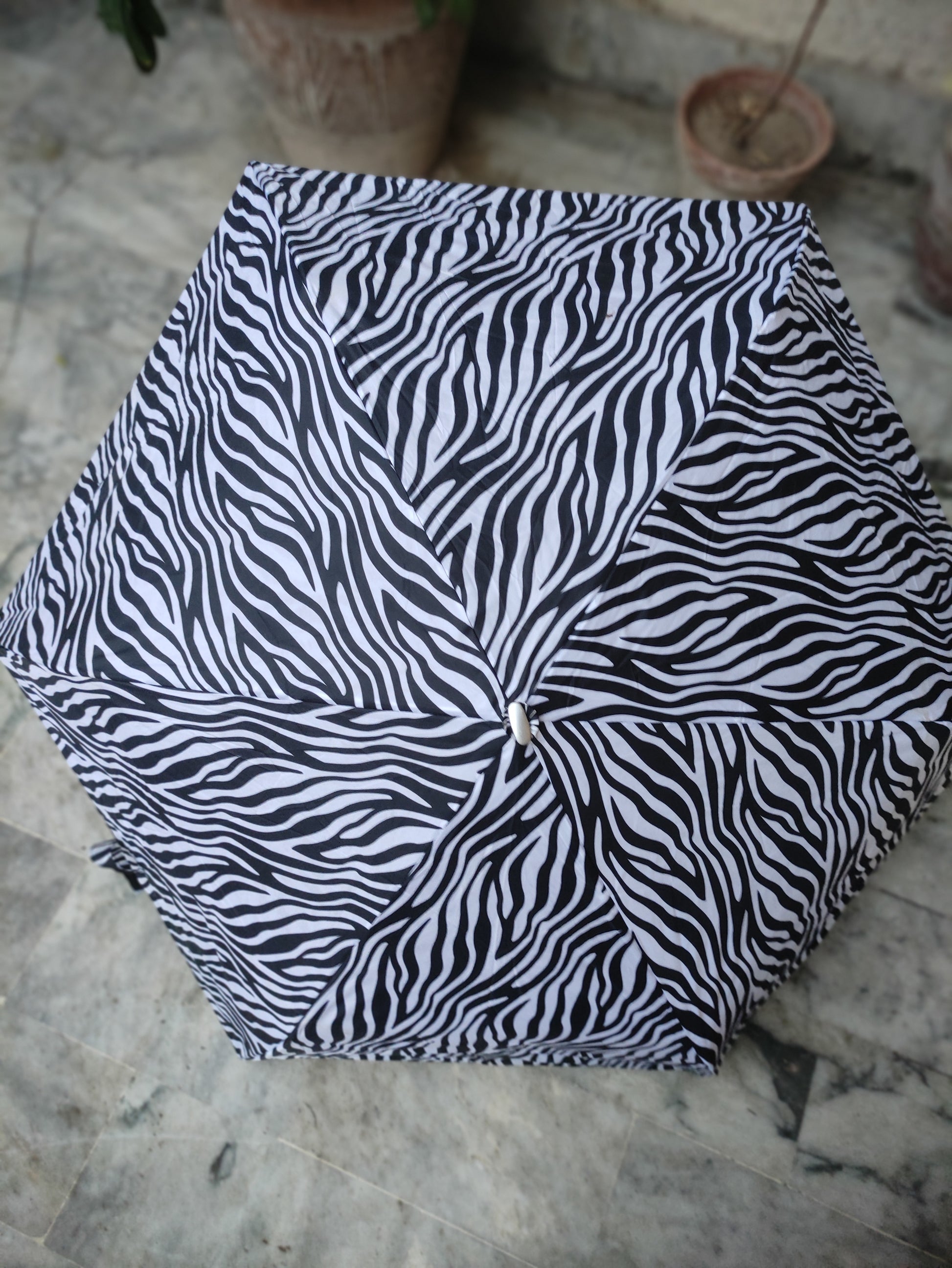BLACK AND WHITE ZEBRA PRINT COMPACT FOLDING UMBRELLA