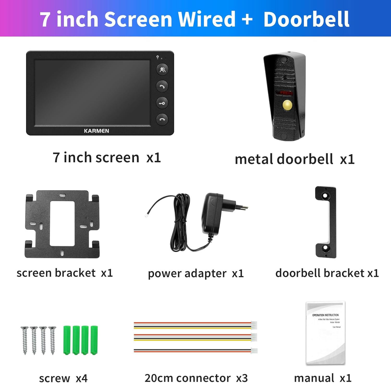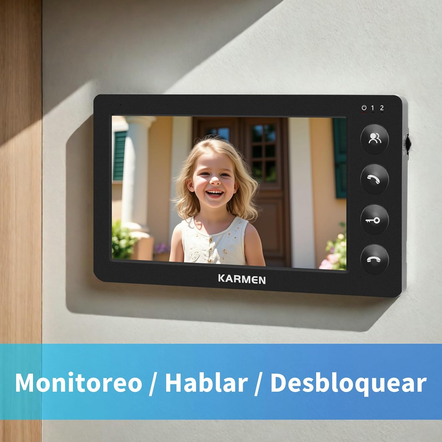 Karmen 7 Inch Video Doorman, Metal Doorbell, Infrared Night Vision, IP65 Waterproof, 16 Tones, Remote Control, Black