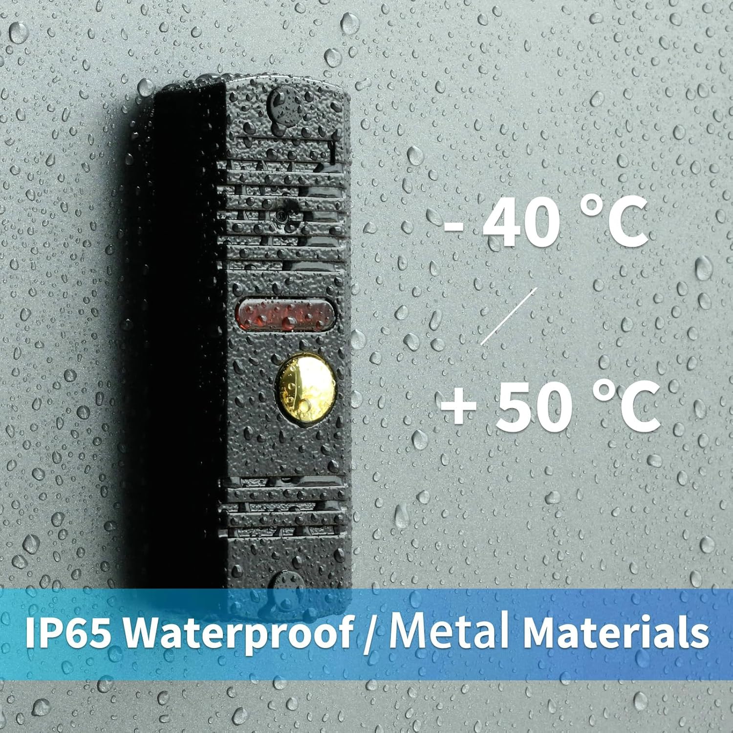 - 1000TVL metal doorbell analog signal, outdoor waterproof IP65, operating temperature from -40°C to +50°C, clear infrared night vision;