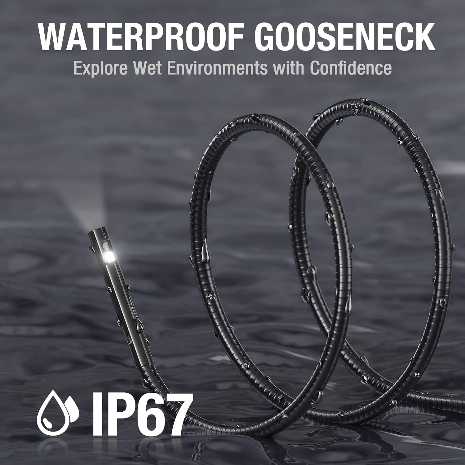 - IP67 WATERPROOF - The borescope is rated IP67 waterproof for use in inclement weather and wet environments. The snake camera probe uses an aerospace connector that is water safe to use in pools, plumbing and the rain.