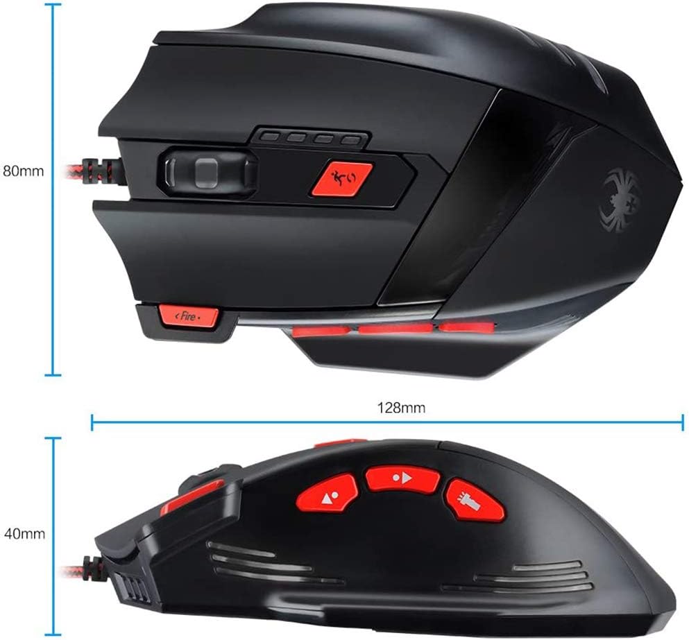 - 【8 Programmable Buttons & Quick Fire Button】All buttons of the mouse can be programmed. The gaming mouse is equipped with a rapid fire button (double click), allowing gamers to achieve continuous shooting with just a press of this button.